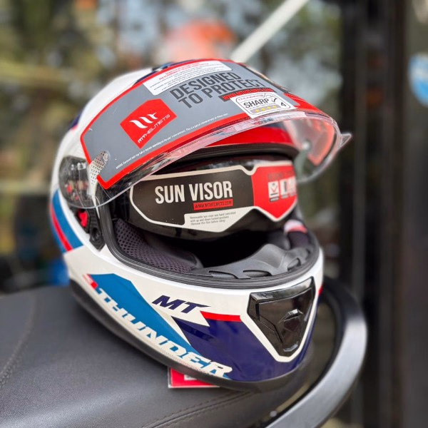 The MT Thunder3 Pro is the ultimate all-round helmet with an aerodynamic shell, multiple vents, integrated drop down sun visor.